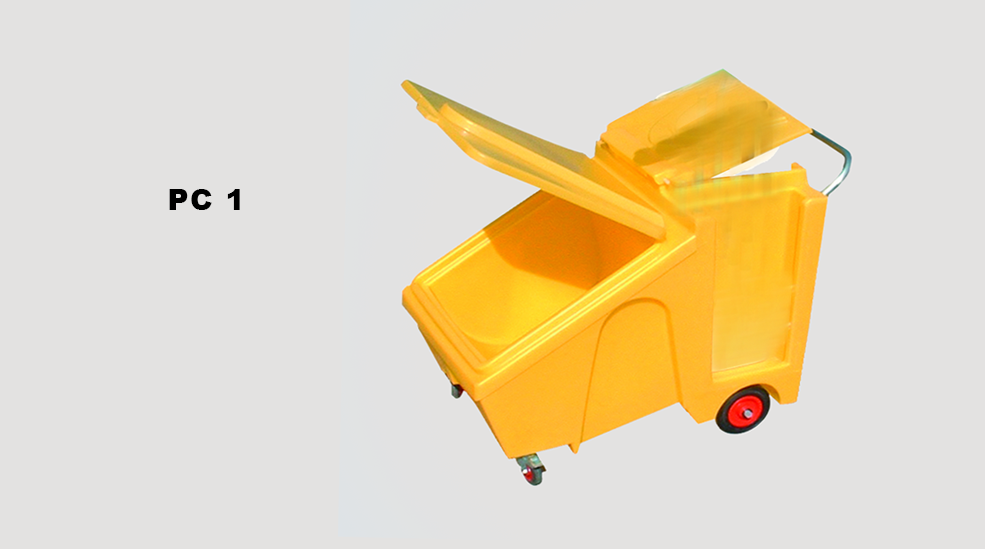 Carrito para granulados con ruedas y freno. Tiene sitio para bolsa, cepillo y recogedor.